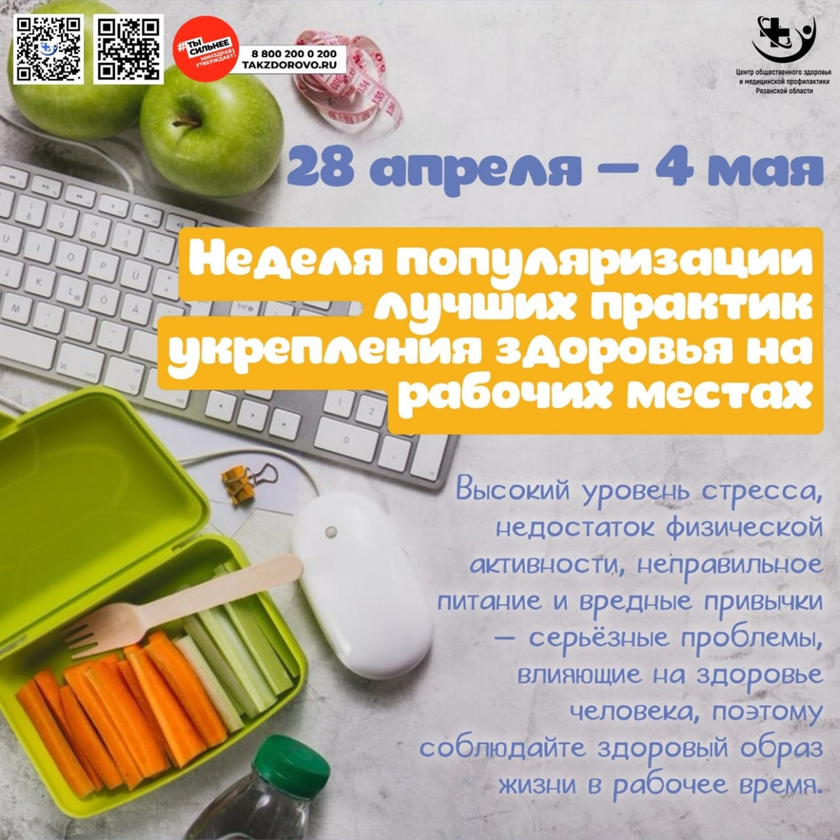 📌В России стартовала неделя популяризации лучших практик укрепления здоровья на рабочих местах.