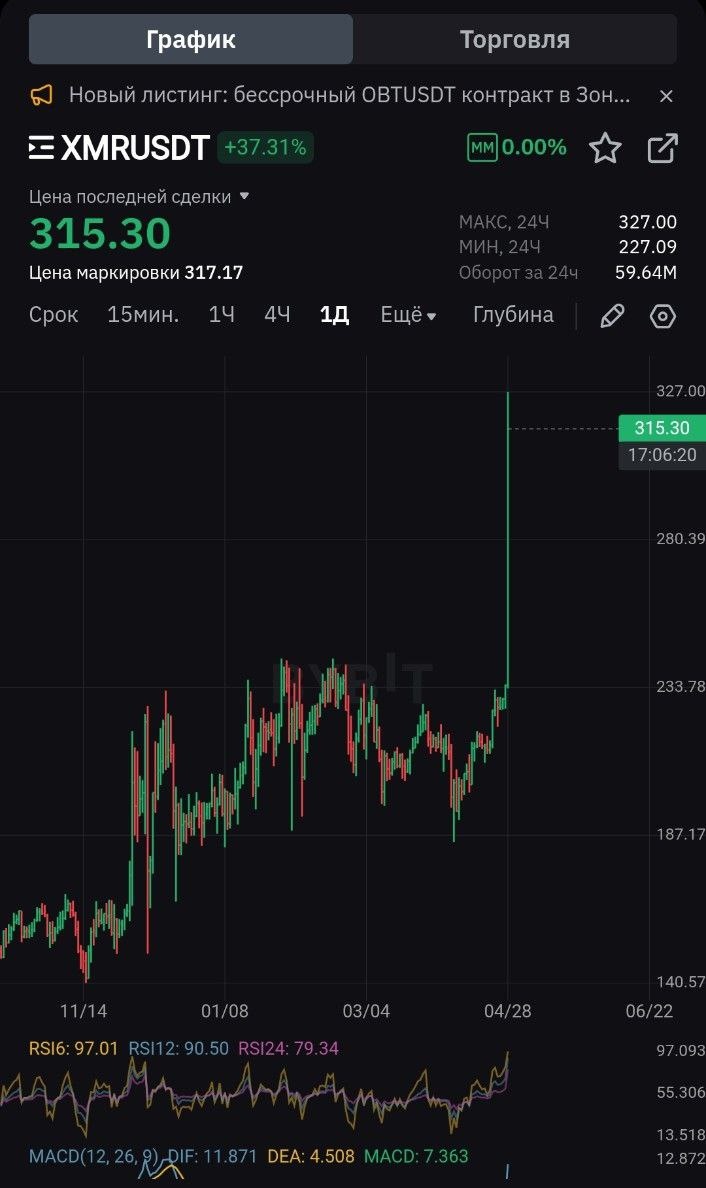 🪙 Сегодня Monero вырос на 40% всего за несколько часов.