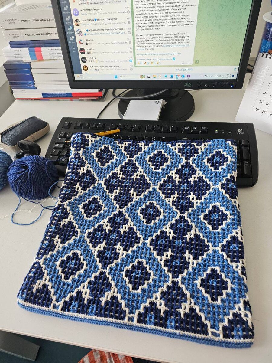 Азартно слежу за продвижением работы Галины, которая увидела этот узор в книге про Самарканд, переложила его на мозаику и вяжет шопер🔥