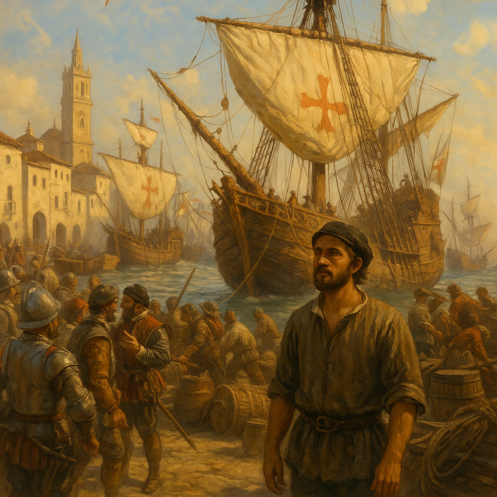 Как один штурман спас Магеллана: история Хуана Себастьяна Элькано Мир помнит имя Фернана Магеллана — непокорного капитана, бросившего вызов бескрайним морям. Но мало кто вспоминает человека, благодаря которому его великая экспедиция всё-таки завершилась: скромного баска по имени Хуан Себастьян Элькано. Он не мечтал о славе. Он мечтал вернуться домой. 1519 год. Летняя жара Севильи плавила брусчатку под ногами. У пристаней толпились торговцы, солдаты, моряки — пятнадцать парусников стояли плечом к плечу, готовясь к отплытию. Пахло солью, вином, потом и горячим деревом от прогретых на солнце бортов кораблей. Пять из этих судов, самые крепкие, выбрала для великого путешествия корона Испании. Среди шумных, загорелых моряков, с рваными рубахами и натруженными руками, стоял Элькано — штурман корабля "Консепсьон", невысокий, с тёмными глазами, в которых читались упорство и скрытая тревога. Фернан Магеллан, их командующий, выглядел чужаком: португалец среди испанцев, настороженный, как волк в