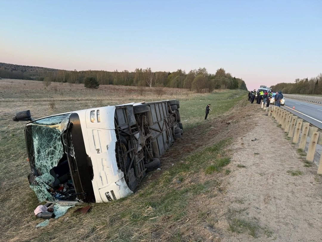 Ночью во Владимирской области опрокинулся туристический автобус с паломниками, ехавшими в Кострому, – пострадали 35 человек, 10 из них