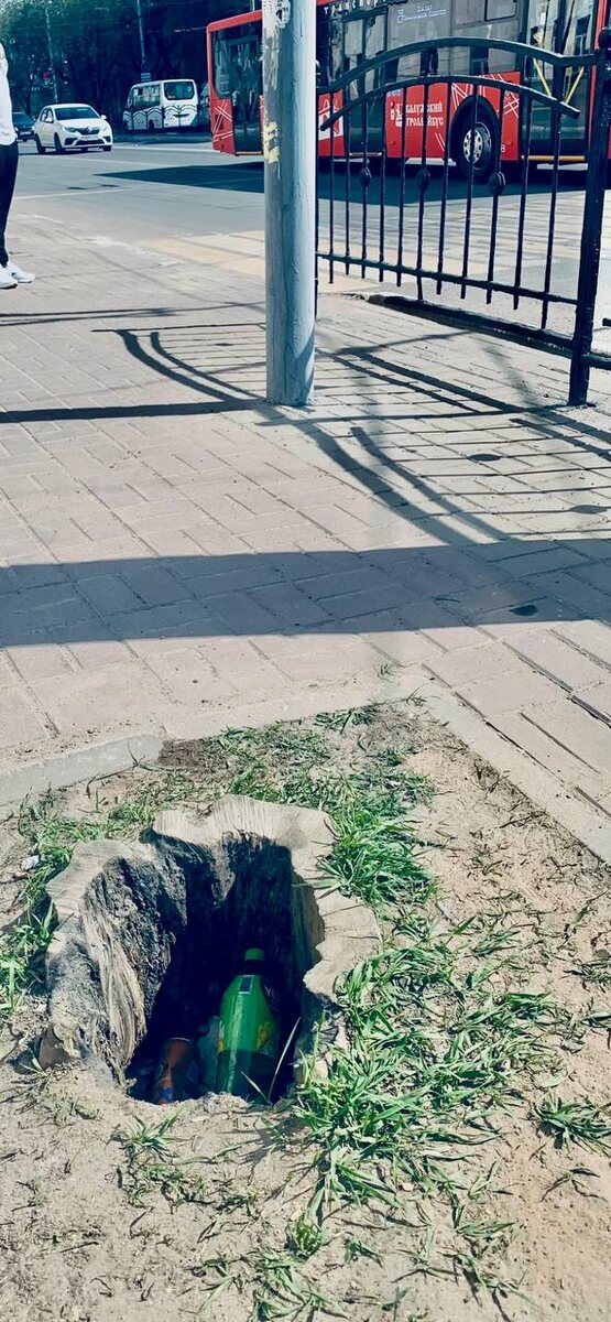 Калужанка в комментарии к посту губернатора Владислава Шапши раскритиковала местную власть за то, что не удалённые пни в центре города превратились в мусорные контейнеры.
