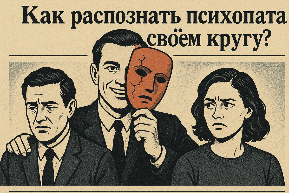 "Он помогал старушкам переходить дорогу, а вечерами издевался над бездомными. Она собирала деньги для детдомов, но тайно травила коллег. 1 из 100 людей — психопат, и 90% из них никогда не попадут в тюрьму. Как вычислить хищника в своём окружении?" Как распознать:
