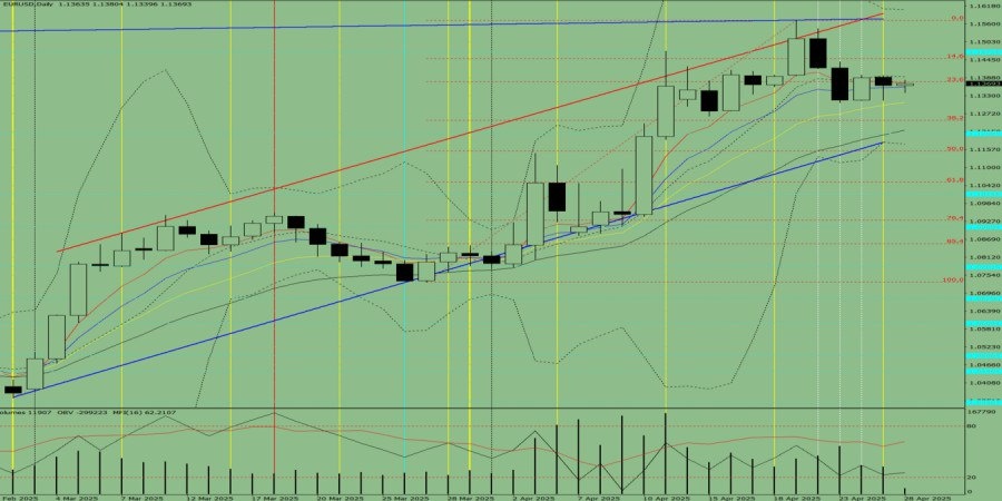 https://basechop.ru/wordpress/?p=40254 Трендовый анализ (рис. 1). В понедельник рынок от уровня 1.1363 (закрытие пятничной дневной свечи), может продолжить движение вниз, с целью 1.1250 – откатный уровень 38.2% (красная пунктирная линия). При достижении этого уровня, возможно, откатное движение движения цены вверх, с целью 1.1304 – 13 средняя линия ЕМА (жёлтая тонкая линия). Рис. 1 (дневной график). Комплексный анализ: – индикаторный анализ – вниз; – уровни Фибоначчи – вниз; – объёмы – вниз; – свечной анализ – вниз; – трендовый анализ – вверх; – линии Боллинджера – вниз; – недельный график – вниз. Общий вывод: нисходящая тенденция. Альтернативный сценарий: цена от уровня 1.1363 (закрытие пятничной дневной свечи), может продолжить движение вниз, с целью 1.1304 – 13 средняя линия ЕМА (жёлтая тонкая линия). При достижении этой линии, возможно, откатное движение движения цены вверх, с целью 1.1373 – откатный уровень 23.6% (красная пунктирная линия). Материал предоставлен компанией…