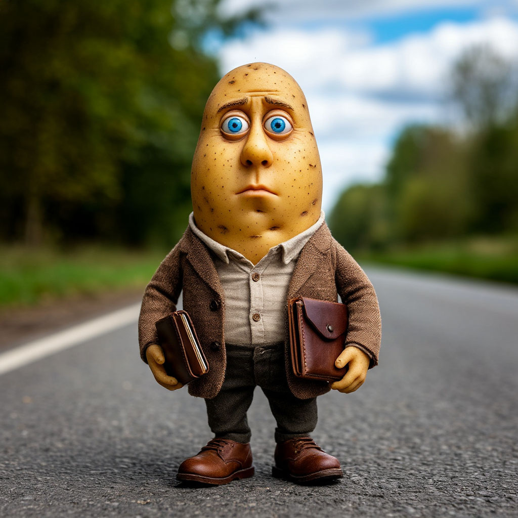 Всё началось в тот самый день, когда ветер дул так, что казалось — он сорвёт кожу вместе с одеждой. Ноябрь. Мокрый. Злой. Я бежала домой через парк, когда его увидела. Он стоял под фонарём. Немного сутулый, в сером пальто. И с головой… как у картошки. Нет, не буквально картофель вместо головы. Но что-то в его лице, в его чертах было настолько неправильным — бугристым, кривым, с маленькими глазами и неровными складками — что первое слово, вспыхнувшее у меня в голове, было именно это: Картофель. Он смотрел на меня. И я не смогла пройти мимо. — Привет, — сказала я, сама не понимая зачем. Он кивнул. Немного склонил свою странную голову набок. — Ты... потерялся? — спросила я. Он снова кивнул. — Где ты живёшь? Он поднял руку и ткнул куда-то в темноту парка. Я посмотрела в ту сторону. Там не было ничего, кроме деревьев и чёрной земли. И всё равно я протянула ему руку: — Пойдём. И он пошёл за мной. Мама не задавала вопросов. Наверное, потому что сама была слишком уставшей от своих нескончаемых