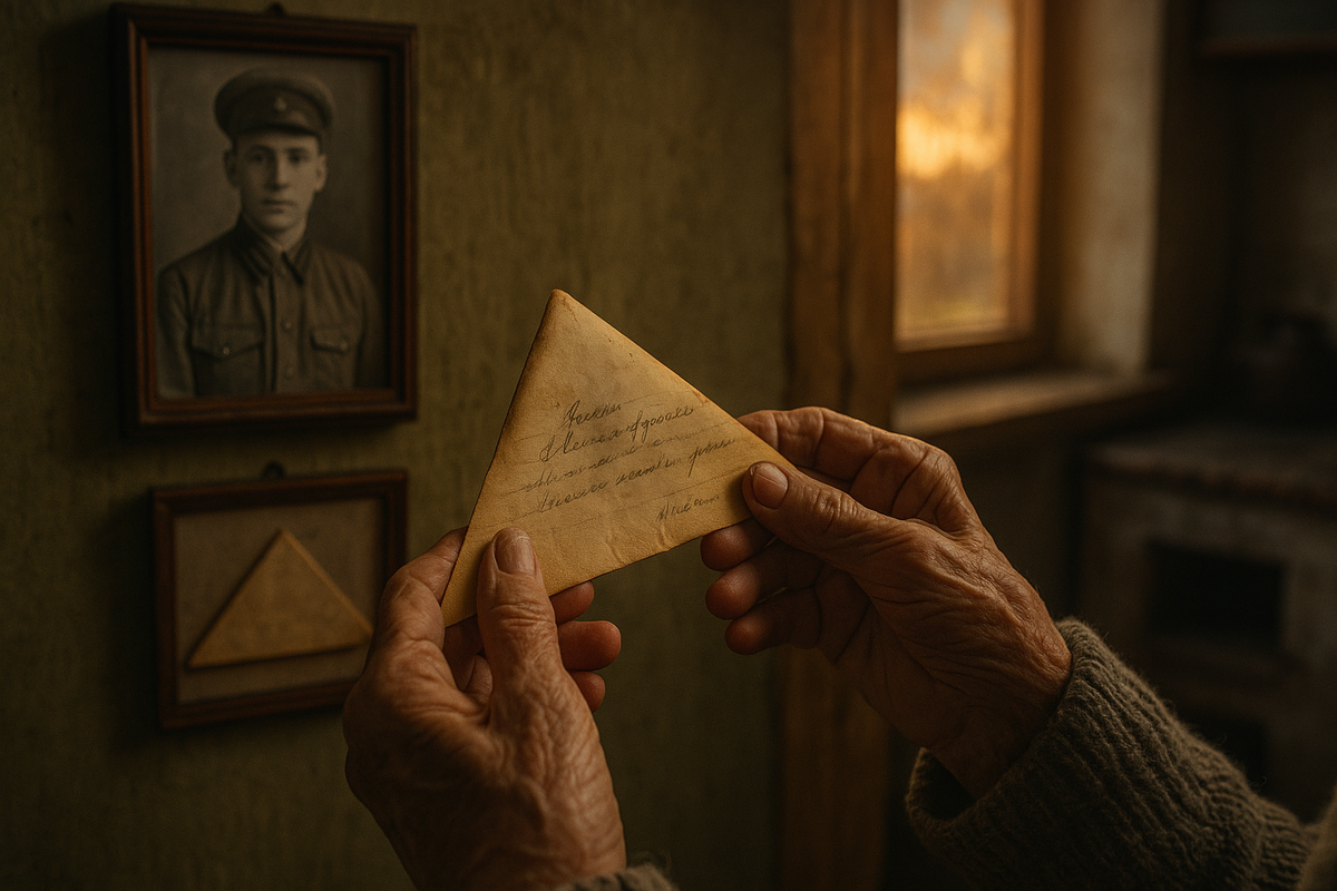 Когда её открыли, изнутри высыпалась пачка треугольных писем. Пожелтевших, потрескавшихся. Письма, которые должны были долететь до своих адресатов — но не успели.