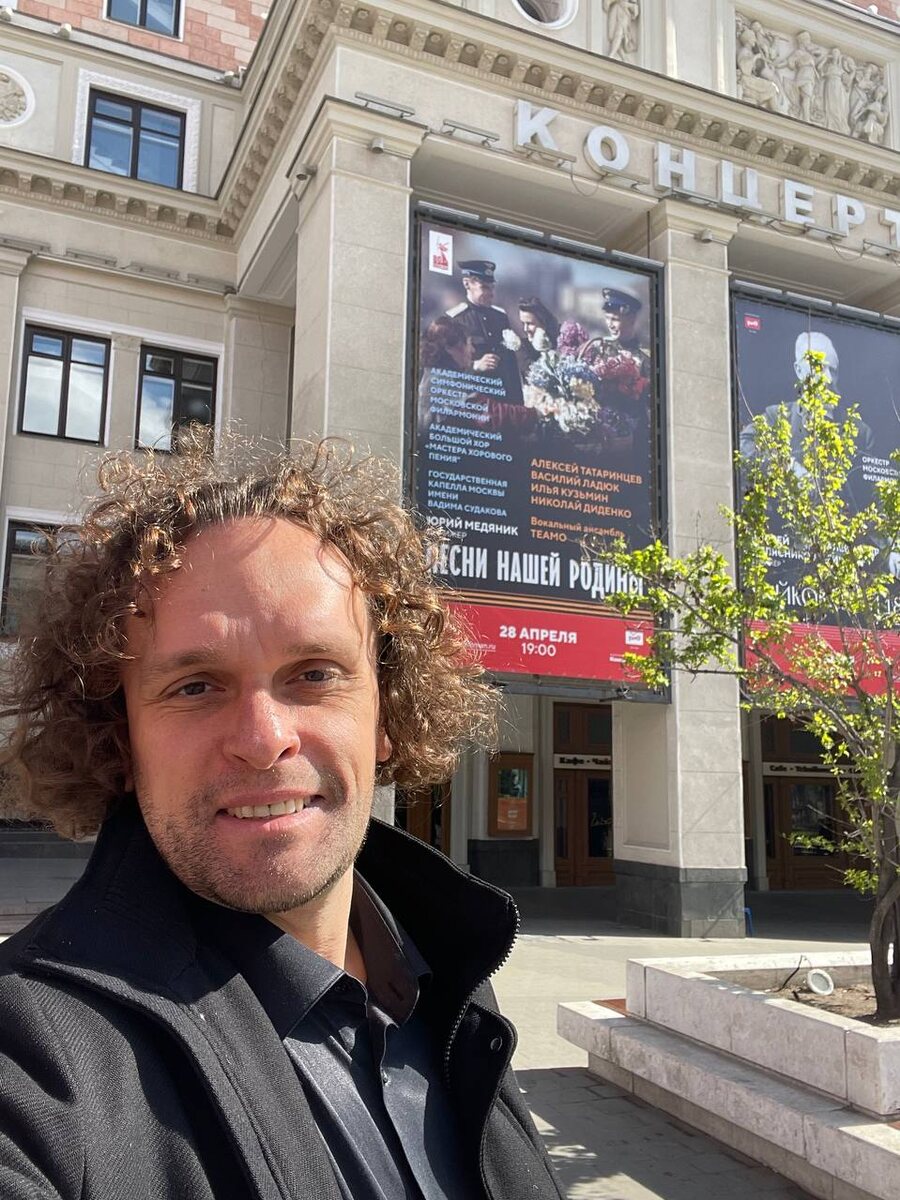 На фасаде Концертного зала им. Чайковского афиша нашего сегодняшнего концерта