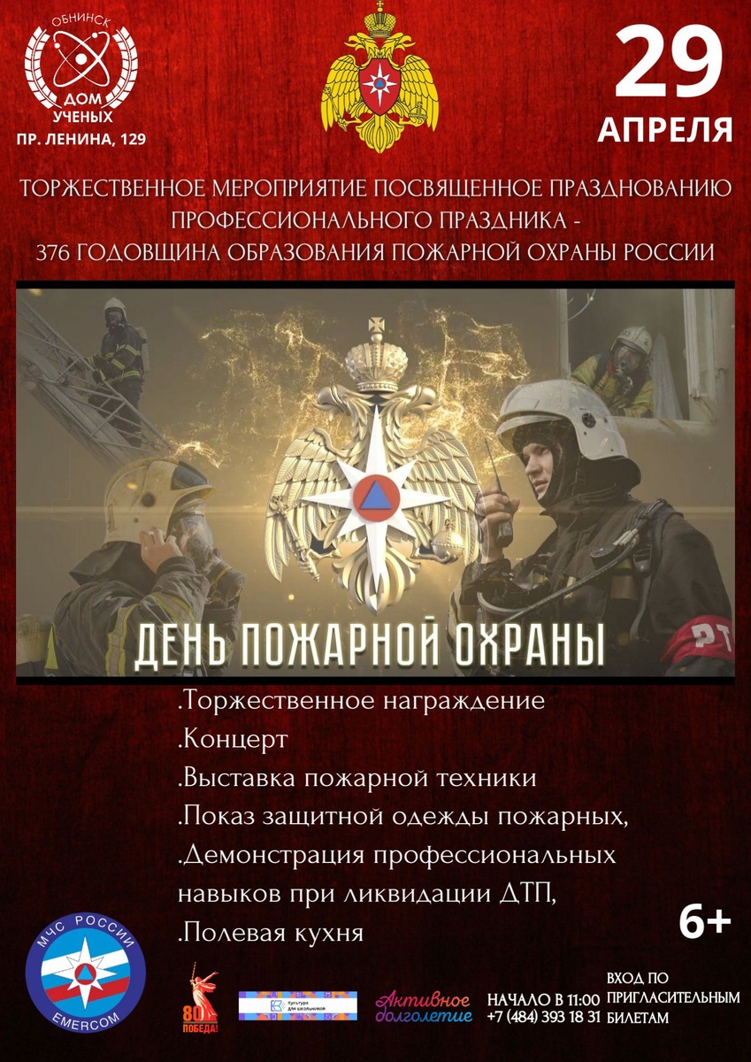 Приглашаем всех желающих принять участие в этом значимом событии. Мероприятие станет отличной возможностью узнать больше о работе пожарных, увидеть технику и поздравить тех, кто совершает настоящие подвиги каждый день. Вход свободный. Телефон: +7 (484) 393 18 31. Обнинск, пр-т Ленина, 129. 👍 Подписаться | Прислать мероприятие