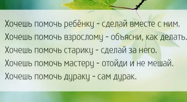 Прежде чем перейти к описанию других прикусов посмотрим на ПОМОЩЬ с разных сторон. ПОМОЩЬ - это действие, основанное на соблюдении законов природы. 1. Только когда тебя просят. Исключение составляют моменты интуитивного внутреннего порыва, чаще в моменты опасности. 2. Это действие, составляющее МАКСИМУМ 49% от просьбы другого человека. 3. Это действие от человека в собственном ресурсе. 4. Это действие, которое не подразумевает корысти.