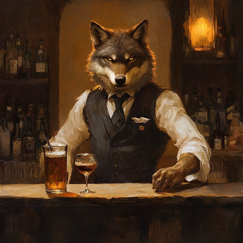 Создано на основе запроса: make a wolf as a bar tender --- Автоперевод: сделать волк как бармен Интересно вышло? 🤔 https://dzen.ru/id/65c0c65c86e4f837c27b24d7 #ИИ #AI #нейросеть #midjourney #art