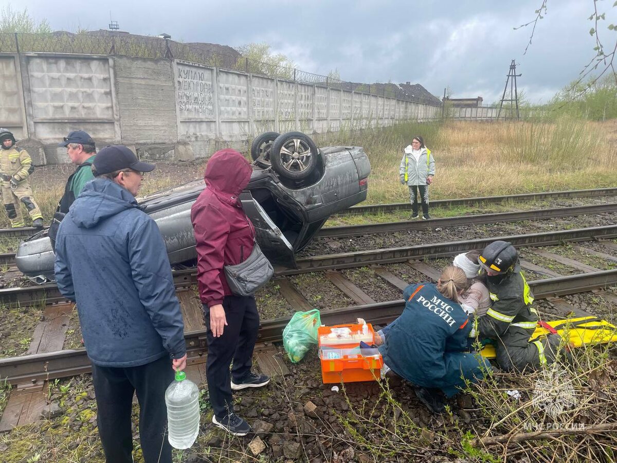 ⚡️😨 Машина опрокинулась на крышу на трамвайные пути в Челябинске
