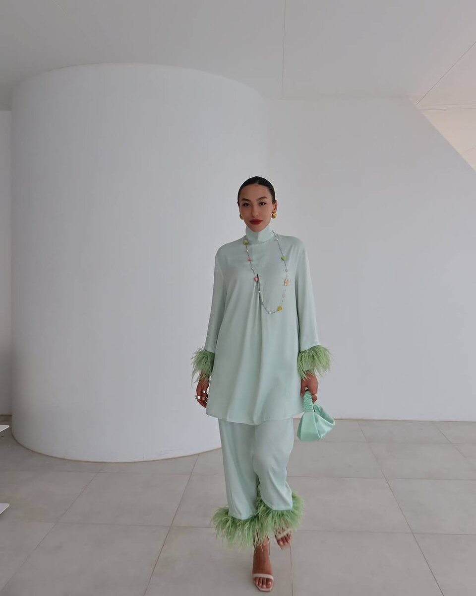Где купить блузу с перьями как у Карлы Ергалиевой? Фото. Instagram @karla__y