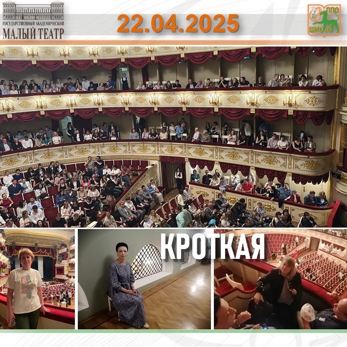🎭 22 апреля 2025 г. члены первичной профсоюзной организаций ГАОУ Школа «ШИК 16» А.А.Красавцева, В.Я.Красавцева и Н.В.Попова с друзьями смотрели в Малом театре спектакль «Кроткая». «Постановка по одноименной повести Ф.М.Достоевского, режиссер Виктор Крамер. В главной роли Сергей Гармаш. Монолог на 2, 5 часа! Зал внимает каждой реплике артиста! Спектакль сопровождался живым оркестром, дирижировал которым (а в конце и играл на альте) сам Юрий Башмет. Буря эмоций после спектакля! Очень рекомендуем эту постановку! Спасибо нашей первичной профсоюзной организации за возможность смотреть спектакли в Малом театре» #МойТеатральныйМарафон #ПроМалый #МалыйТеатр