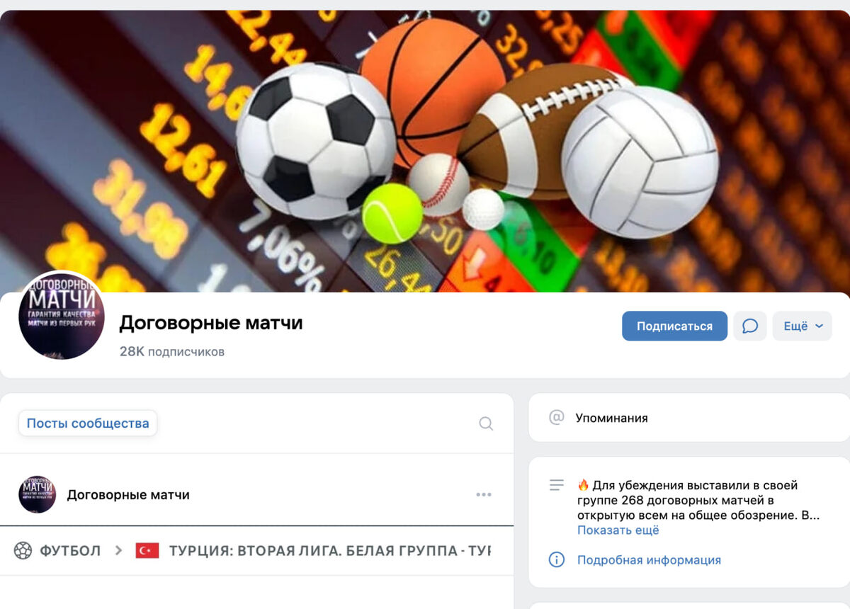 Админ быстро вышел на связь, вежливо поприветствовал, завязал разговор, как будто мы давно знакомы. Говорит: "Работаю в одной крупной БК, через знакомых узнаю инфу по договорным матчам в футболе. Сами понимаете, лишние глаза тут не нужны, всё строго конфиденциально". Сразу добавил, что новичкам делает спецпредложение — матч всего за 7 000 рублей, "чтобы попробовать и убедиться".