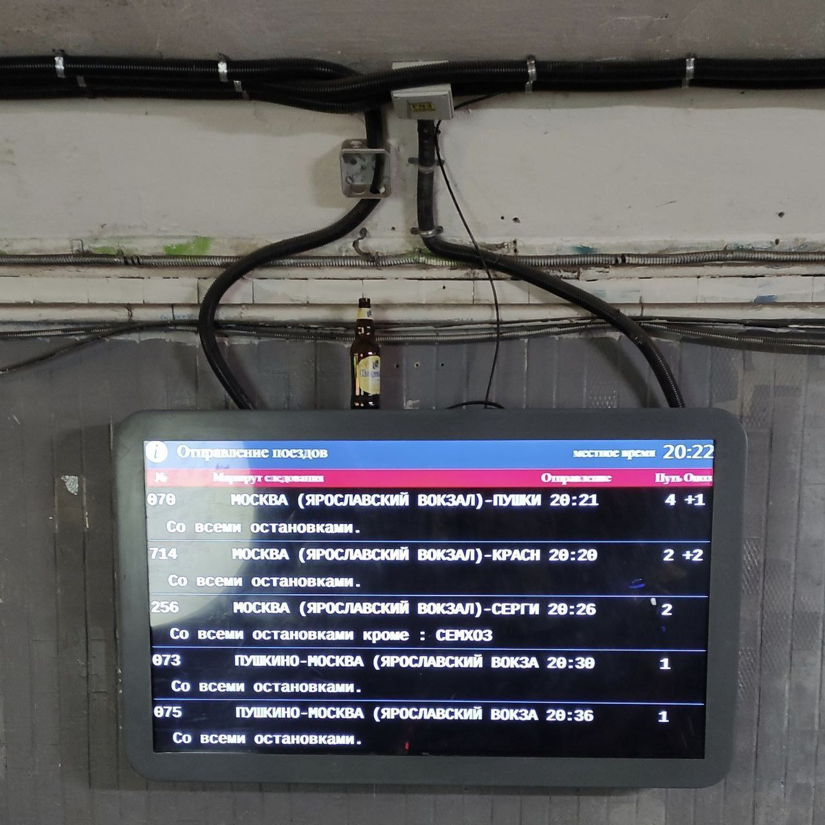 В ответ на пост Один из экранов, разбитый в переходе на платформе Строитель, починили и вернули на место. Кто то уже сделал из него подставку для пива.