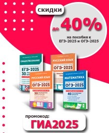 ВНИМАНИЕ! НАПОМИНАЕМ! По промокоду ГИА2025 при заказе на сайте издательства вы можете получить скидку до 40%! Пособия по ОГЭ-2025 и пособия по ЕГЭ-2025!