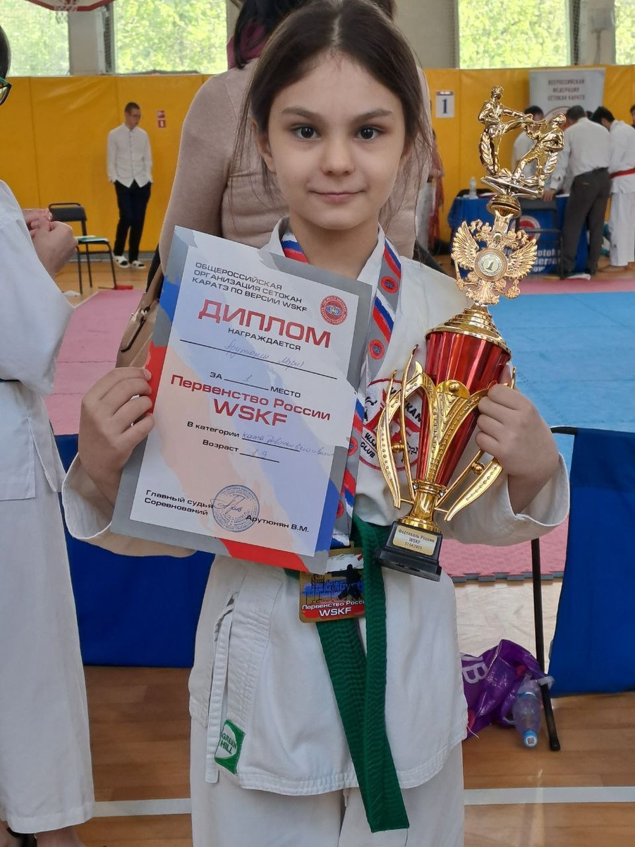 🥇 Спортсменка-второклассница стала лучшей в России! Ещё одно великолепное достижение наших юных каратистов! Ученица 2 "Б" класса Мария вчера стала абсолютным победителем на Чемпионате и Первенстве России WSKF по карате! 👘 Достойная победа была одержана в одной из самых престижных категорий КАТА среди девочек 8-9 лет. Жюри единогласно признало Марию лучшей, отметив её безупречное исполнение и знание техники! Поздравляем нашу талантливую каратистку и её тренера с заслуженным первым местом! 🎉 #ДОНМ #ТалантливыеДетиМосквы #Школа1474