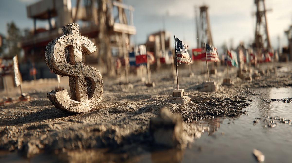 Создано на основе запроса: A cinematic realistic 1970s desert oil field scene showing small flags of OPEC countries planted around oil rigs, with a large U.S. dollar sign in the center, warm natural light, symbolizing OPEC countries adopting dollar-based oil pricing, historical documentary style, no people, 16:9 aspect ratio --- Автоперевод: Кинематографическая реалистичная сцена в пустынном нефтяном поле 1970-х годов, на которой изображены небольшие флаги стран ОПЕК, посаженные на нефтяных выборах, с большим знаком доллара США в центре, теплым естественным светом, символизирующим страны ОПЕК, внедряющие ценообразование на нефть на долларах, исторический документальный стиль, нет людей, 16: 9 Какое твое мнение? 🤔 https://dzen.ru/id/65c0c65c86e4f837c27b24d7 #ИИ #AI #нейросеть #midjourney #art