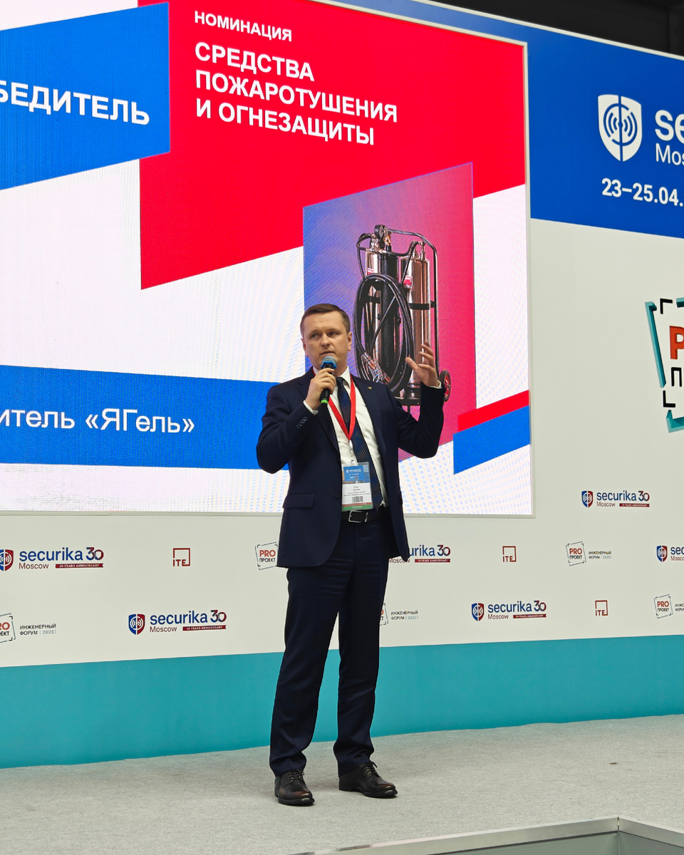 Гидрогелевый огнетушитель «Ягель» одержал победу в номинации «Средства пожаротушения и огнезащиты». Конкурс проходил в рамках выставки Securika Moscow 2025. Эффективность: Оптимальное решение для тушения литий-ионных аккумуляторов (ЛИАБ)