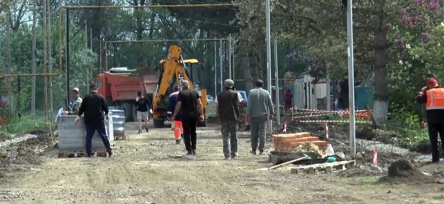 В юго-восточном микрорайоне п.Целина полным ходом идет строительство дорог и тротуаров