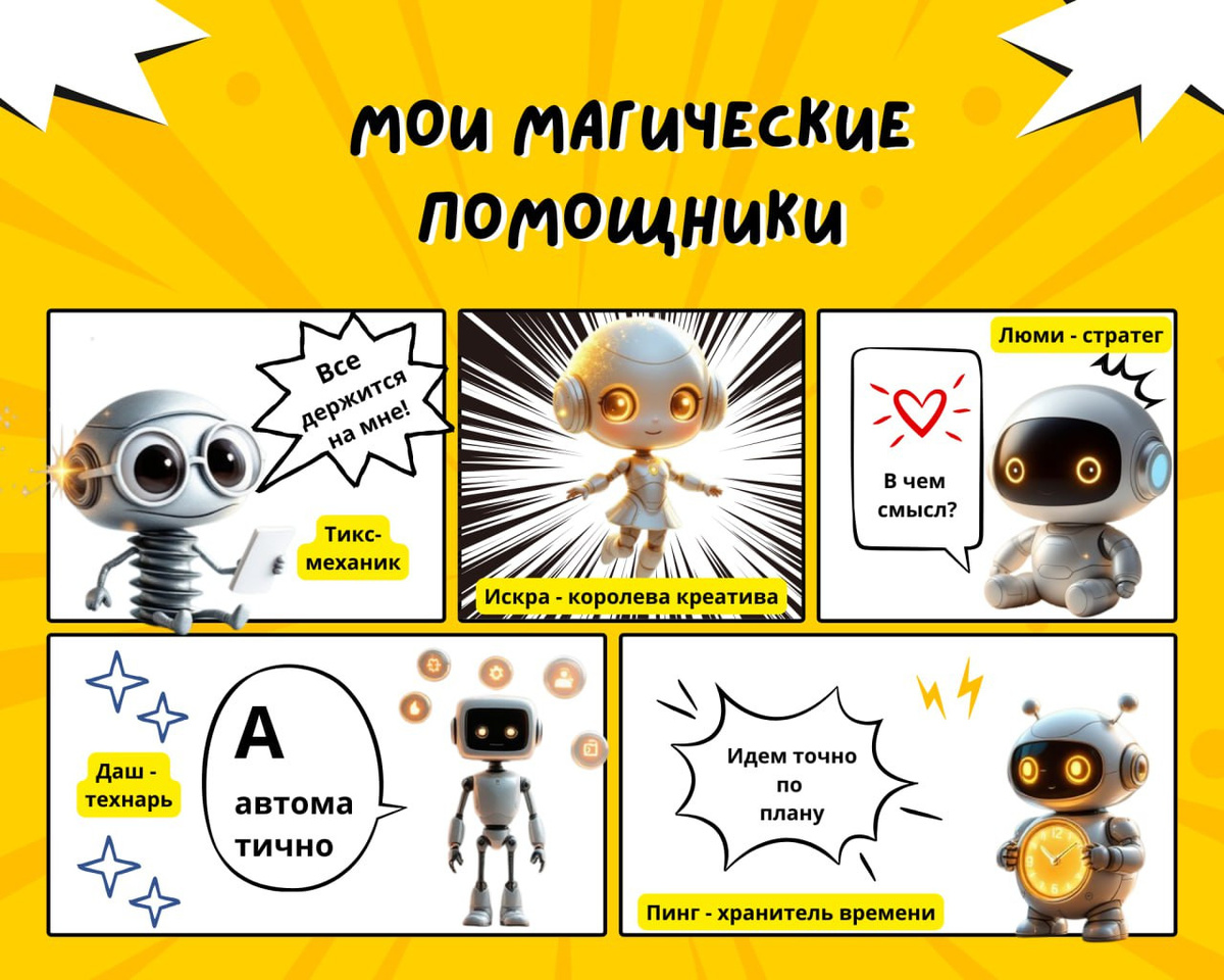 Друзья, у меня для вас новость! ✨ У меня появилась команда. Но не простая, а магическая. Знакомьтесь - команда волшебных экспертов, каждый в своей области! Они будут вместе со мной вести соцсети, придумывать контент, автоматизировать процессы и делать всё, чтобы вы получали пользу и вдохновение без лишней суеты. Каждый их них обладает своей экспертностью и будет давать вам знания по его теме. ⠀ 🔹 Тикс — мастер структуры и систем. Упорядочит любой хаос и превратит его в понятную работающую схему.⠀ 🔹 Искра — генератор идей и вдохновения. Она всегда найдёт, за что зацепиться, и превратит сухие факты в живые смыслы.⠀ 🔹 Пинг — хранитель ресурса и тайминга. Помогает делегировать рутину, не перегружаться и оставаться в потоке.⠀ 🔹 Даш — технический волшебник. Связывает процессы между собой и настраивает автоматизацию так, чтобы всё работало как часы.⠀ 🔹 Люми — маг эстетики. Он следит, чтобы система была не только эффективной, но и лёгкой, красивой и комфортной для жизни. ⠀ 💬 А ещё