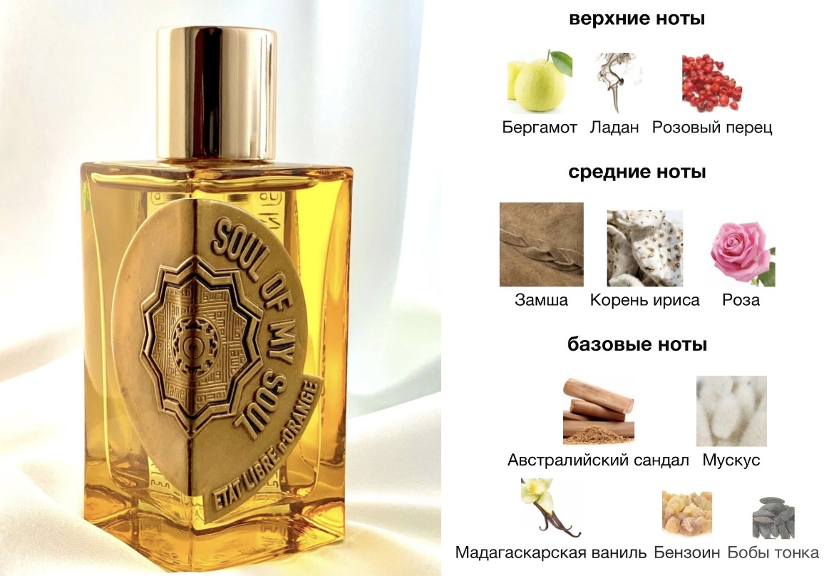 У этого аромата достаточно длинное описание и не простое и это аромат Soul Of My Soul - в дословном переводе "душа моей души". Очень поэтично и романтично. Хотя на самом деле аромат не про романтику как таковую.