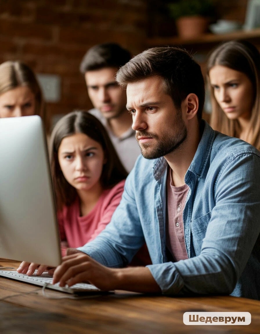 Сидит за компьютером, "работает"назовем это так, ещё и нам с ребёнком постоянно говорит, чтобы его не отвлекали и закрывали двери с другой стороны, и сидели, как мышки(ведь он для семьи старается), а я ещё помогать и поддерживать его в этом должна(так продолжалось 2 года).
