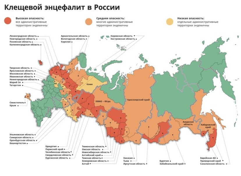 Если вы обнаружили прикрепившегося клеща, важно удалить его как можно скорее. Вот рекомендации по безопасному удалению: После удаления клеща следует: В некоторых ситуациях важно обратиться к врачу: Чтобы избежать укусов клещей в будущем, следуйте рекомендациям: Укус клеща требует внимательного подхода. Знание правильных действий при укусе поможет снизить риски и предотвратить возможные заболевания. Будьте внимательны к своему здоровью и не пренебрегайте профилактическими мерами! Ниже приведена карта России, где наиболее распространены клещи: