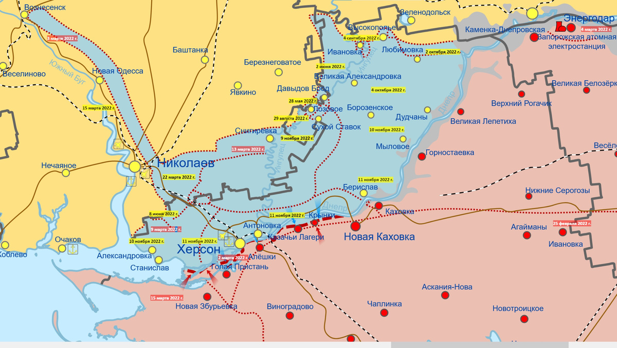 В феврале прошлого года тогда еще МО РФ Шойгу доложил ВГК о полном осв-ии Крынок и о том, что на левом берегу Днепра остаются лишь несколько вояк Хунты… А пару дней назад бессменный НГШ доложил ВВП о полном осв-ии Курской области… Севернее Тёткино по р.Сейм и южнее Горнали и Гуево по р.Псёл всё еще пр-к… И об успехах наступления в ЧЯ и севернее Дзержинска. Трасса на Константиновку и очередные клещи между ЧЯ и Дзержинском…