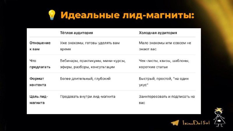 Теплые и холодные: как не перепутать аудиторию и не сливать лид-магниты впустую Если вам кажется, что один лид-магнит закроет всех подряд — спешу огорчить: нет. У людей есть температура — и нет, это не про простуду. Это про уровень доверия к вам. ☀️❄️ ⚡️Теплая аудитория — уже знает вас, готова слушать, смотреть и покупать. Им заходят: - Вебинары - Практикумы - Бесплатные мини-курсы - Эфиры, разборы и консультации 🥶Холодная аудитория — увидела вас впервые, щелкает котиков и вряд ли запланировала изменить жизнь за один день. Им нужны: - Чек-листы - Квизы - Шаблоны - Короткие статьи Главное правило: Не заставляйте холодных людей проходить 12-недельный марафон по утрам! Они не выживут. И не обижайте теплых, кидая им «чек-лист из 3 пунктов». Они хотят глубокого общения 🥰 ⚡ Сегодня в Академии провожу МК «15 типов лид-магнитов, которые будут приводить вам клиентов годами» Всем ромашек! 🌸🌸🌸