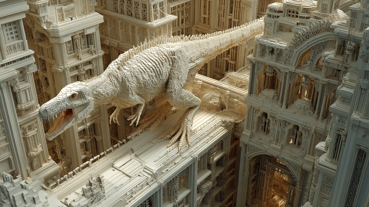 Создано на основе запроса: voxel vasnetsov velociraptor vivisections, hyperfine detail, clean lines, dystopia, world's end