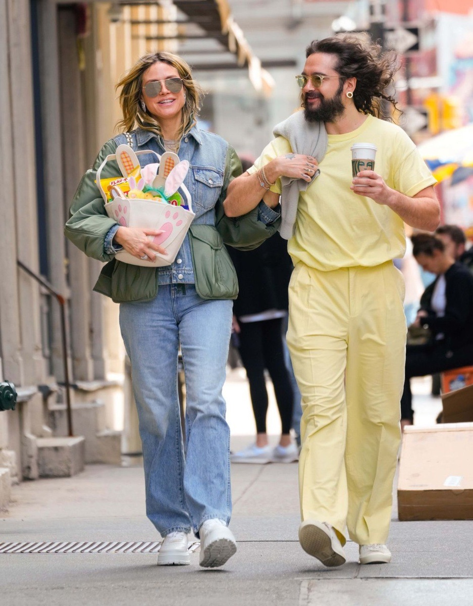 - Хайди Клум вместе с мужем Томом Каулитцем возвращались из магазина с пасхальной корзинкой. На модели удобные белые кроссовки на платформе и джинсы прямого кроя. Джинсовая куртка кастомизированная, дополненная плащевкой. Куртка дизайнерская от Alexander McQueen из коллекции 5-ти летней давности. Хайди надела верхнюю часть куртки, а есть и подстежка из плащевой ткани.