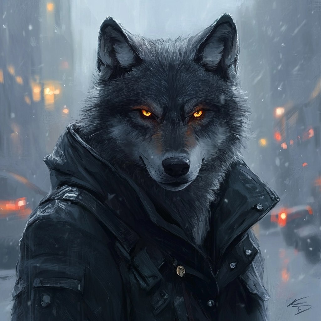 Создано на основе запроса: make a wolf with clothes and background of the year 2025