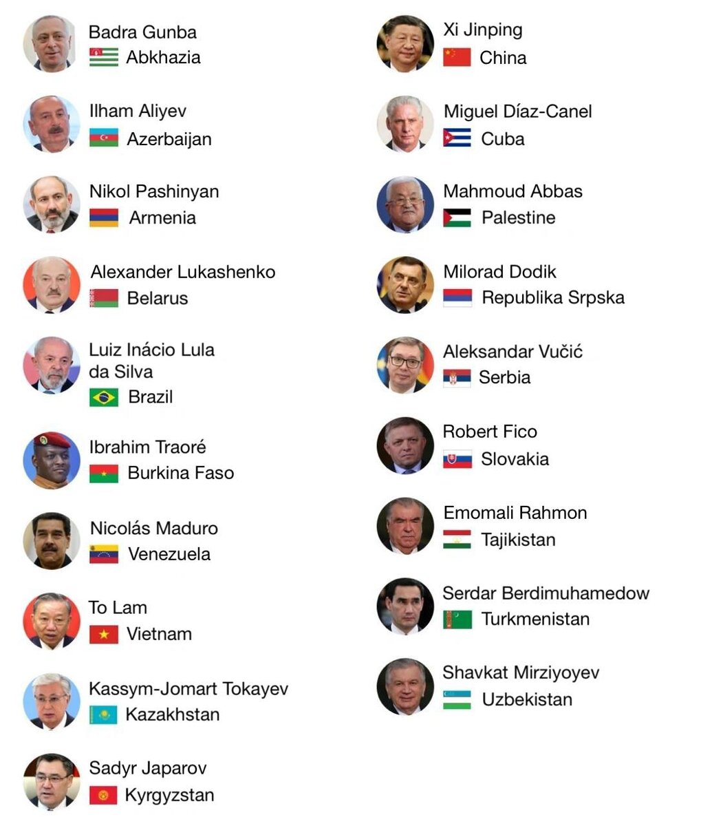 List of foreign officials who have confirmed their attendance at Moscow's Victory Day Parade on May 9th, as of today