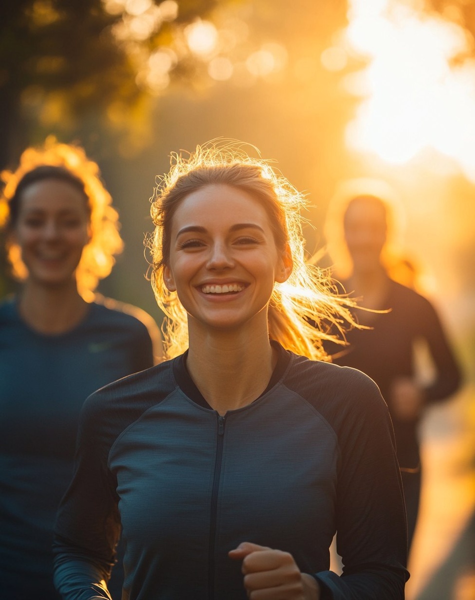 Создано на основе запроса: 60s happy women doing run in sportwears High-resolution photography, taken from a Canon R5 camera, using a Canon EF lens, with a bokeh background, shallow depth of field, and sharp focus.