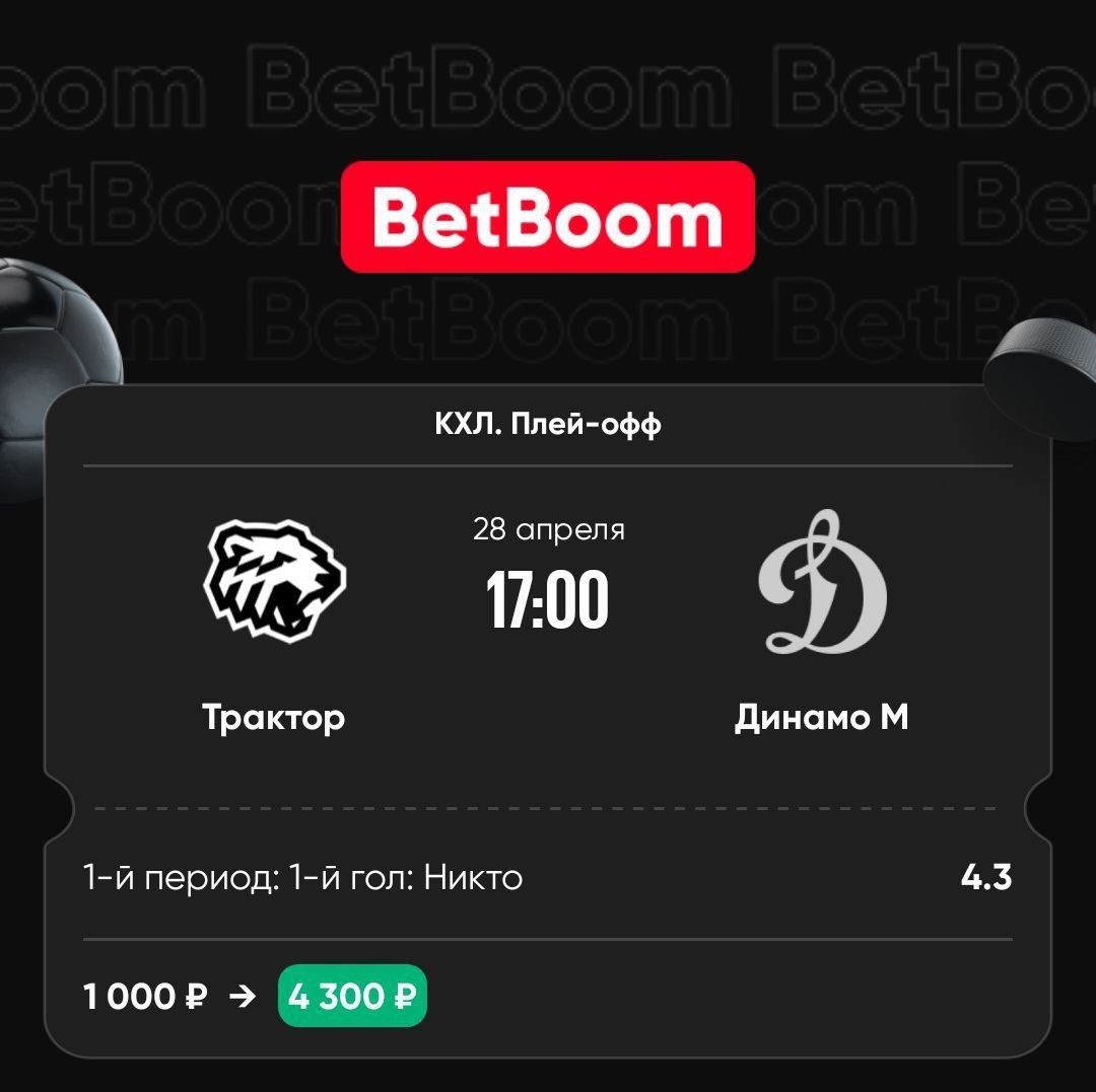 Начинается полуфинальная серия плей-офф КХЛ. Теперь после двух подряд серий с преимуществом домашнего льда, придется начинать на выезде. Первый матч сложен для каких-либо прогнозов, поэтому можно предположить, что команды будут осторожны друг к другу в первые минуты матча. Соответственно, голов в первом периоде может и не быть. Ставлю на безголевой первый период со стороны обеих команд с отличным коэффициентом 4.3 в BetBoom Регистрируйтесь прямо сейчас по моему неизменному промокоду BUTSA. Для вас как всегда доступно отличное предложение, где вы получите 1000 фрибетов при регистрации и 7000 на первый депозит. Забрать свой фрибет и начать играть с отличной конторой!