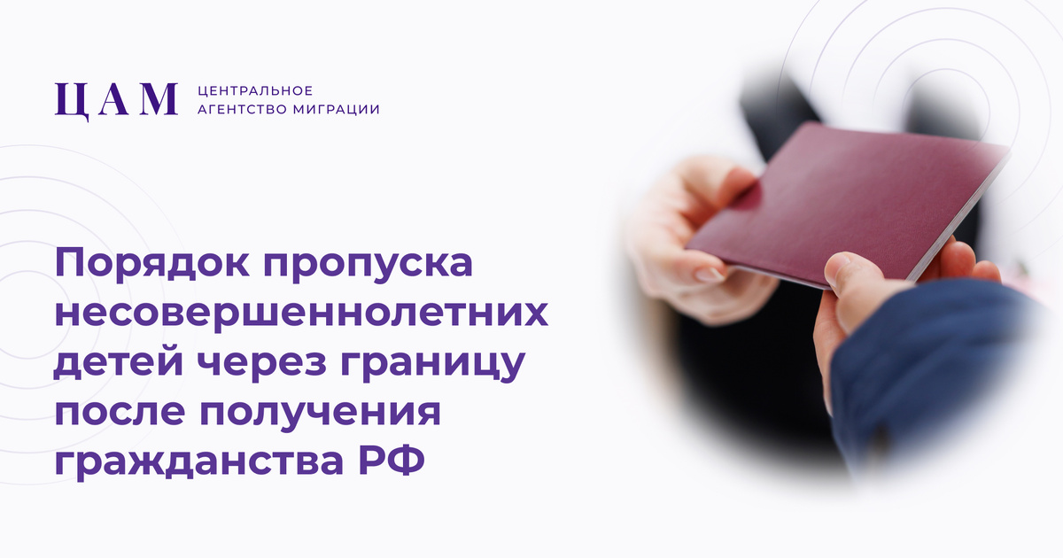 Порядок пропуска несовершеннолетних граждан РФ через границу, если вы получили гражданство для себя и детей и собираетесь выезжать из страны Соотечественники с детьми, которым команда ЦАМ помогает в оформлении РВП, ВНЖ и гражданства РФ, часто задают вопросы по пересечению границ с детьми после получения паспорта РФ. 📌 Как только вы и ваши несовершеннолетние дети приобрели гражданство РФ — выехать из России без загранпаспортов вы не сможете! ✅ Для оформления загранпаспорта для несовершеннолетнего нужно обращаться в территориальные органы МВД России. Заявку можно подать через сервис Госуслуги (рассказывали тут). Пропускной режим несовершеннолетних через границу комментирует эксперт отдела сопровождения ЦАМ Диана Григорьянц: «Обычно дети выезжают с одним или двумя законными представителями. Если несовершеннолетний гражданин России выезжает из страны без сопровождения родителей или опекунов, он должен иметь при себе, кроме загранпаспорта, нотариально оформленное согласие от одного из роди