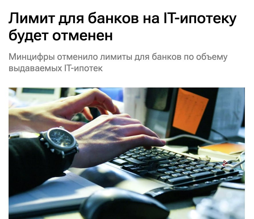 IT-ипотека снова стала доступной без каких-либо ограничений, ведь Минцифры отменило лимиты на кредитование. Это радует, ведь для специалистов из IT-сферы также будут снижены банковские комиссии. Это позволит сократить переплату и сделать льготную ипотеку еще более привлекательной.