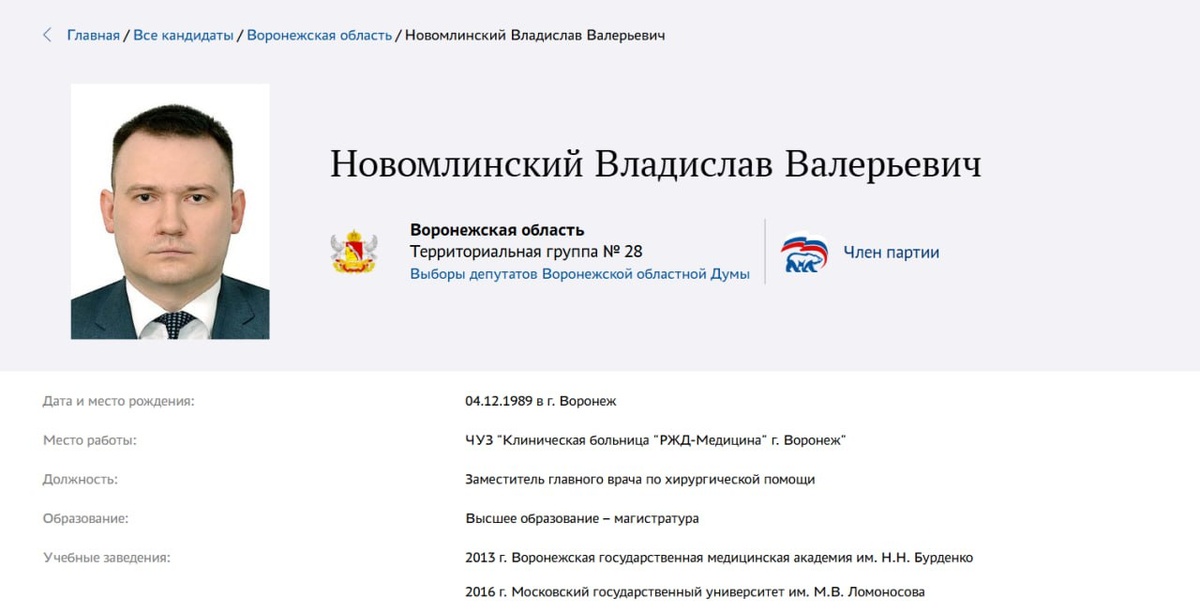 Владислав Новомлинский окончил два университета – воронежскую медакадемию им. Н.Н. Бурденко и МГУ. С 2020 года он работает заместителем главврача по хирургической помощи в клинической больнице «РЖД-Медицина».
