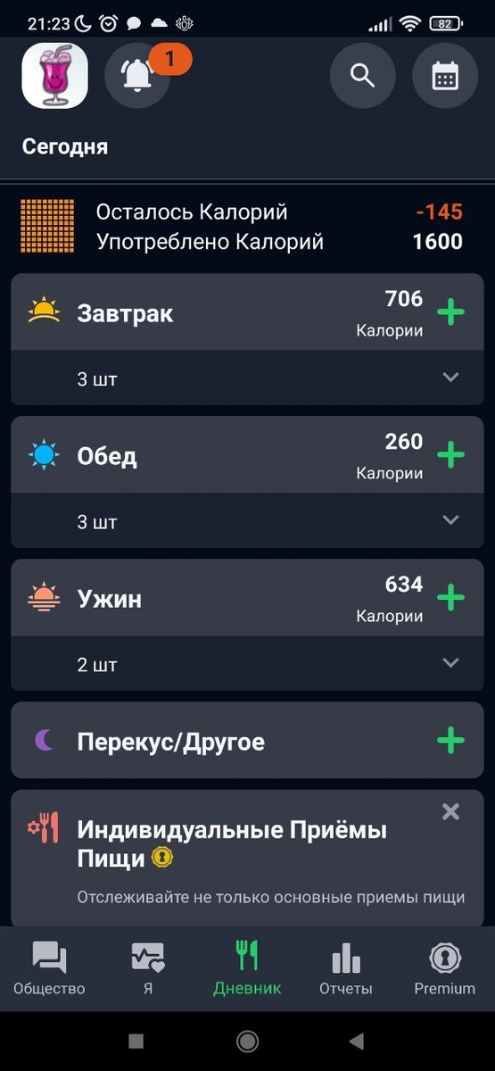 Мой вчерашний калораж. Не сбалансирован абсолютно. Оговорюсь сразу - я никого не принуждаю делать как я. Но все же мне интересно следующее: если я влезаю в свою суточную калорийность и даже чуть недоедаю, но при этом 2-3 раза в неделю занимаюсь в зале, то будет ли положительный эффект? Кстати, по расчетам, я могу есть 1800 ккал. В приложении выставлено 1455, хз почему. Так сложились звёзды 🙈