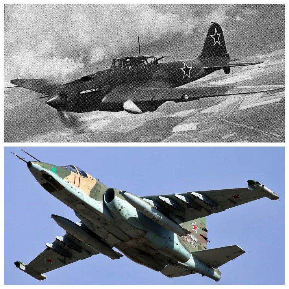 Легендарный штурмовик Ил-2 стал самым массовым боевым самолетом в истории авиации — было выпущено более 36 тысяч самолётов. «Летающий танк» внёс огромный вклад в победу над Вермахтом. «Одетый» в броню, вооруженный пушками и пулеметами Ил-2 стал грозой не только для наземных частей противника, но и для люфтваффе. Штурмовики сыграли одну из решающих ролей в капитуляции армии Паулюса, уничтожая транспортные самолёты Геринга на аэродромах и даже в воздухе, не давая им доставить провиант и боеприпасы окруженным гитлеровцам. Колоссальный вклад Ил-2 внесли и в успех крупномасштабной операции «Багратион» летом 1944 года. Да и вообще ни одна заметная операция РККА в этой войне не обходилась без ильюшинских машин. Достойным наследником Ил-2 стал Су-25 «Грач», став после легендарного «летающего танка» вторым массово выпускающимся в нашей стране самолетом-штурмовиком. Су-25 продолжает заложенные предшественником славные традиции, оказывая огневую поддержку наступающим силам в зоне СВО. «Грачи» акт
