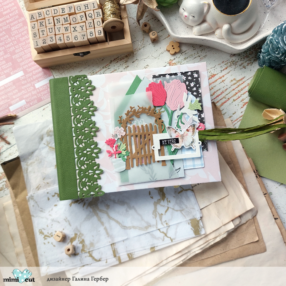 Всем привет! Сегодня хочу пригласить вас в гости, прогуляться немного по моему пока ещё небольшому цветнику. Мой сад начинается с калитки (сет "Отвори потихоньку калитку" от Mimicut). В оформлении обложки здорово смотрится кружевное шитьё (нож "Возвращение Ришелье"). Развороты у меня лаконичные, но каждая деталь здесь имеет значение и свой смысл. Здесь спрятались прошлогодние фотоснимки и очень много вырубки. В деле следующие сеты Mimicut: "Вершки и корешки", "Подожди дожди", "Малиновый цвет", "Суккулентомания", "Лето в кармане", "Молодо-зелено", "Ключи от всех дверей", "Ценная коробочка", "Что посеешь, то и пожнёшь", "Лесной чай", "Посадить дерево", "Дверь полуоткрыта", Я молодой тюльпан", "Что скрывает шкаф", "Про отдых", "Дай мне руку", "Ласточкино гнездо", "Родовое поместье", "Библиотечный учёт", "Весне дорогу", "Nota bene", "Во саду ли, в огороде", "Курсы кройки и шитья", "Летучий пленник, запертый в стекле". В альбоме есть кармашки и вкладыши для дополнительных фото и записей.