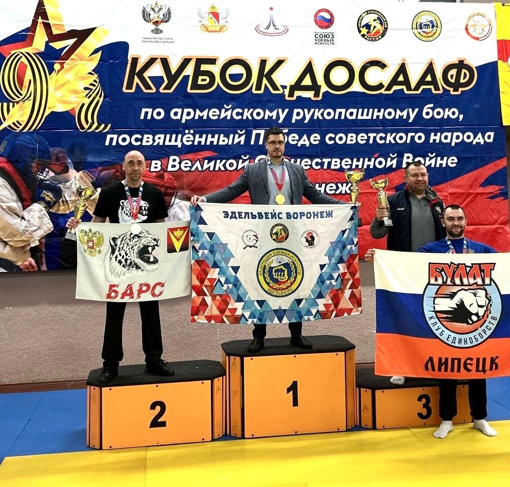 Борисоглебские бойцы покорили Воронеж: 11 золотых медалей на турнире по АРБ 27 апреля в г. Воронеже прошёл межрегиональный турнир по армейскому рукопашному бою, посвященный 80 -летию Победы советского народа в Великой Отечественной войне. В соревнованиях приняли участие 12 команд из Воронежской, Липецкой, Белгородской и Тамбовской областей, в количестве более 200 спортсменов. Наш город представили спортсмены из Борисоглебской спорт. школы и спортивного клуба рукопашного боя «БАРС» в составе 38 человек. В личном зачёте наши спортсмены заняли 11 первых, 8 вторых и 8 третьих мест. Подробности на сайте "Мой Борисоглебск"