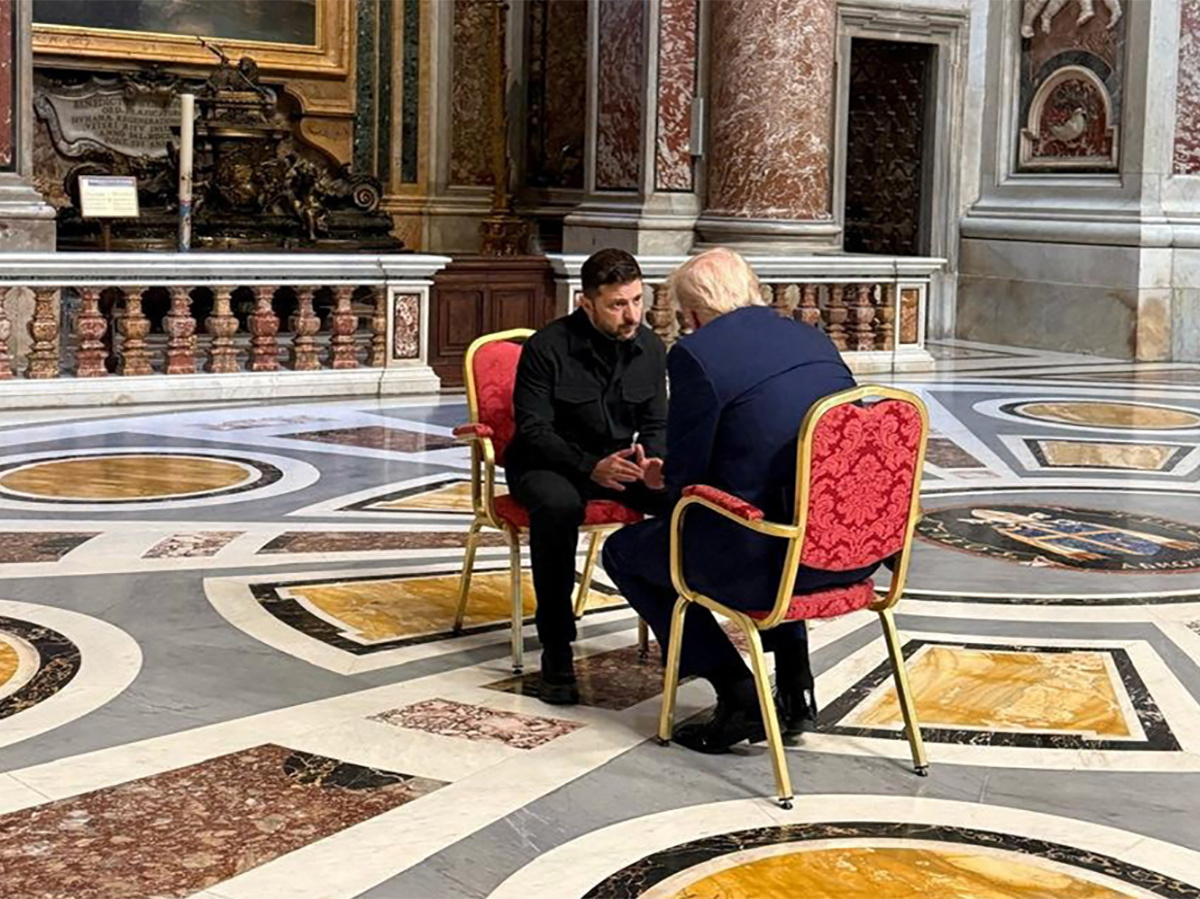 Стало известно, кому предназначался третий стул на встрече Трампа и Зеленского. Во время недавней встречи в Ватикане президент США Дональд Трамп сделал замечание президенту Франции Эммануэлю Макрону. Трамп оказался недоволен присутствием своего французского коллеги. Как сообщает The Sun со ссылкой на профессионального специалиста по чтению по губам Николу Хиклинг, разговор произошёл перед переговорами Трампа с главой киевского режима Владимиром Зеленским. Согласно анализу, в момент, когда Макрон подошёл к Трампу и Зеленскому, он пожал руку только украинскому лидеру, проигнорировав американского президента.
