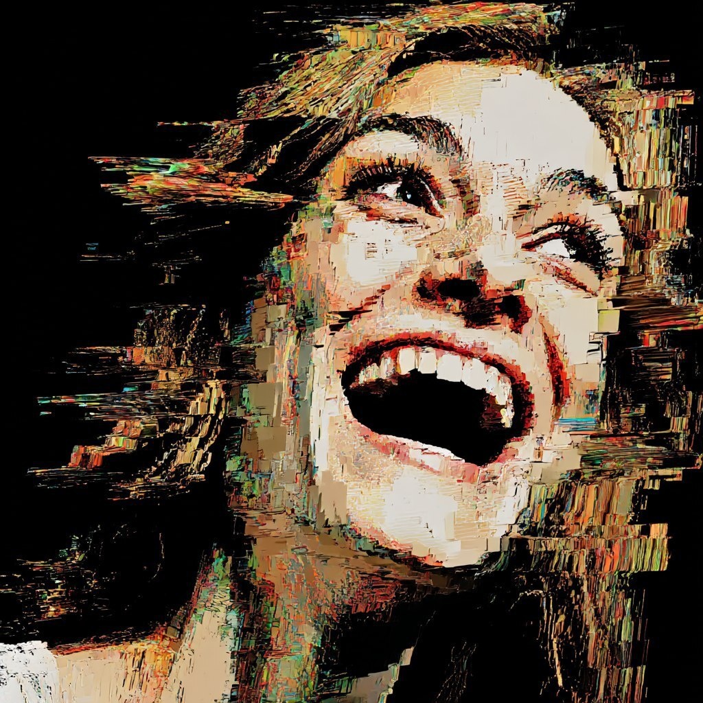 Создано на основе запроса: voxel pixel splatter art with the actress laughing at you