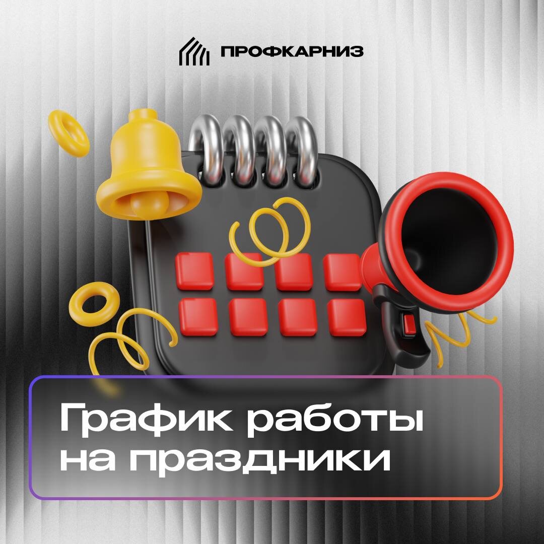 График работы в праздничные дни 🎉 Дорогие клиенты! Сообщаем о режиме работы компании «ПрофКарниз» в майские праздники: 📅 30 апреля Сокращенный день — работаем до 18:00. 📅 1 мая Выходной день. 📅 2, 3, 4 мая Дежурный менеджер — с 10:00 до 19:00. 📅 5, 6, 7 мая Обычный график — с 10:00 до 19:00. 📅 8, 10, 11 мая Дежурный менеджер — с 10:00 до 19:00. 📅 9 мая Выходной день. 📅 С 12 мая Работаем в штатном режиме (с 10:00 до 19:00). В дежурные дни менеджер ответит на ваши вопросы и поможет с оформлением заказов. Для оперативного решения задач рекомендуем обращаться заранее! Спасибо за понимание. Желаем вам ярких и солнечных праздников! 🌞 Ваш «ПрофКарниз»