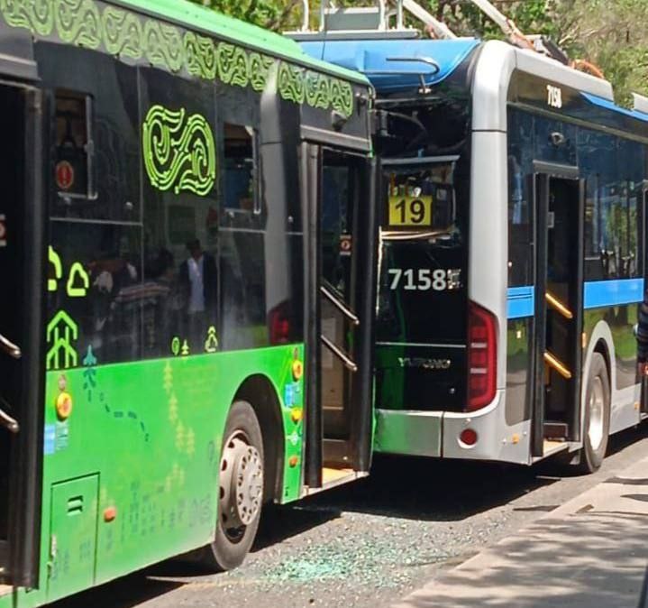 13 человек пострадали в Алматы во время столкновения автобуса и троллейбуса