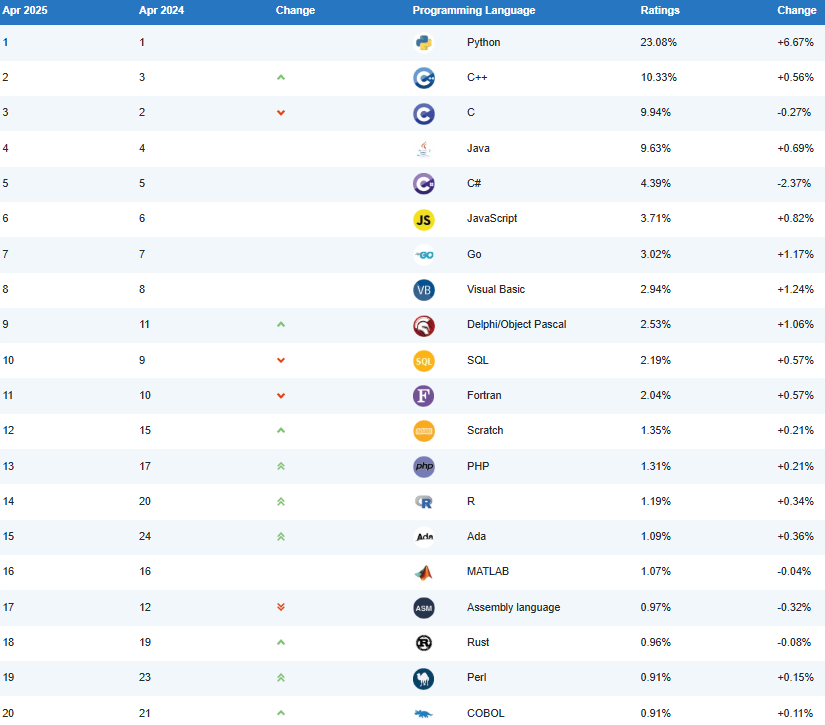 Языки программирования Kotlin, Ruby и Swift долгое время занимали стабильные позиции в топ-20 индекса TIOBE. Однако в последнее время они начали терять популярность и, похоже, вскоре выйдут из моды. Причины падения Kotlin и Swift схожи: оба языка в основном используются для разработки под одну мобильную платформу — Android и iOS соответственно. В то время как сегодня существуют другие достаточно хорошие языки и фреймворки для кроссплатформенной разработки. Да, Swift можно использовать для Android-разработки, но это довольно сложно. А Kotlin на iOS так и не смог широко закрепиться. Ситуация с Ruby несколько иная. Долгие годы Ruby конкурировал с Python и Perl. Пока Perl терял популярность, Ruby удерживал позиции. Но теперь, когда Python стал универсальным языком программирования во всем мире, для Ruby почти не осталось места. Еще одно интересное наблюдение: мир языков программирования сейчас переживает фазу консолидации. Топ-20 языков занимает 83,56% от общего рынка. Это очень высокий п