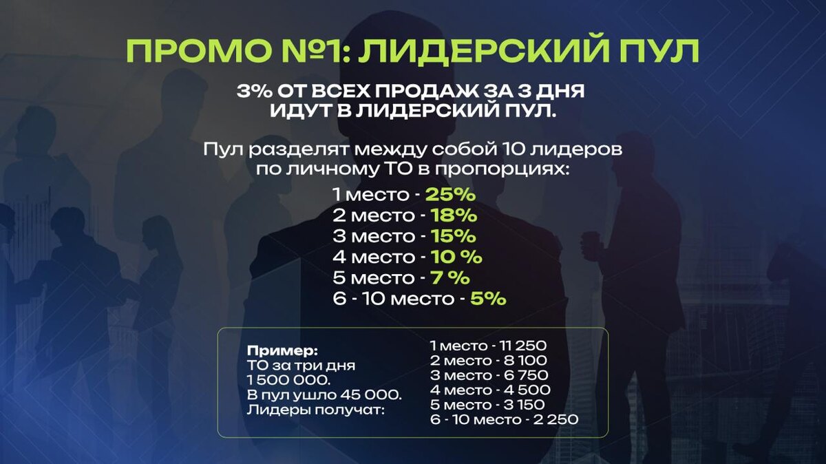 🔥 Друзья, вы знаете, что на 28-30 апреля у нас объявлены потрясающие промо. Давайте сделаем их еще более наглядными, и посчитаем ВАШУ ВЫГОДУ в цифрах. Важно! Если эти цифры покажутся вам пока большими, ничего страшного, просто попредставляйте, что ЭТО ВОЗМОЖНО И ДЛЯ ВАС ТОЖЕ! Берем первые два промо (см. оба слайда) 😉 ГОТОВЫ?) Итак, например, вся компания за эти три дня сделала продаж на 1.5 млн Usdt. И представьте, что ЛИЧНО ВЫ за эти три дня сделали продажи в свою первую линию на 100 тыс Usdt. И, например, вы заняли 2-е место в Промо №1 "Лидерский пул" (см. слайды) ВАША ВЫГОДА: 🔹как победитель промо №1 вы сразу получаете бонусом 8 100 долл! 🔹как победитель промо №2 вы получаете бонусную поездку (на двоих!) в Черногорию, чтобы лично встретиться с Виктором Копыловым и Владиславом Беляевым, посмотреть Медицинский центр и производство Фармы. НО ЭТО НЕ ВСЕ! 🔹вы также автоматически выполняете промо "Волшебное Марокко"! (где нужно сделать ТО 75 тыс долл) 🔹и конечно, вы зараб