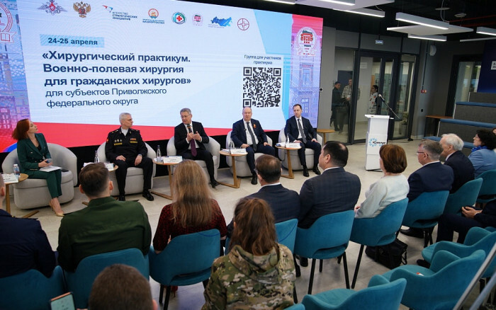 25 апреля в Уфе Глава Башкортостана Радий Хабиров принял участие в открытии практикума «Военно-полевая хирургия для гражданских хирургов». В Межвузовском студенческом кампусе Евразийского НОЦ собрались 250 специалистов хирургического профиля из регионов Приволжского федерального округа, которые имеют опыт лечения военнослужащих после ранений.